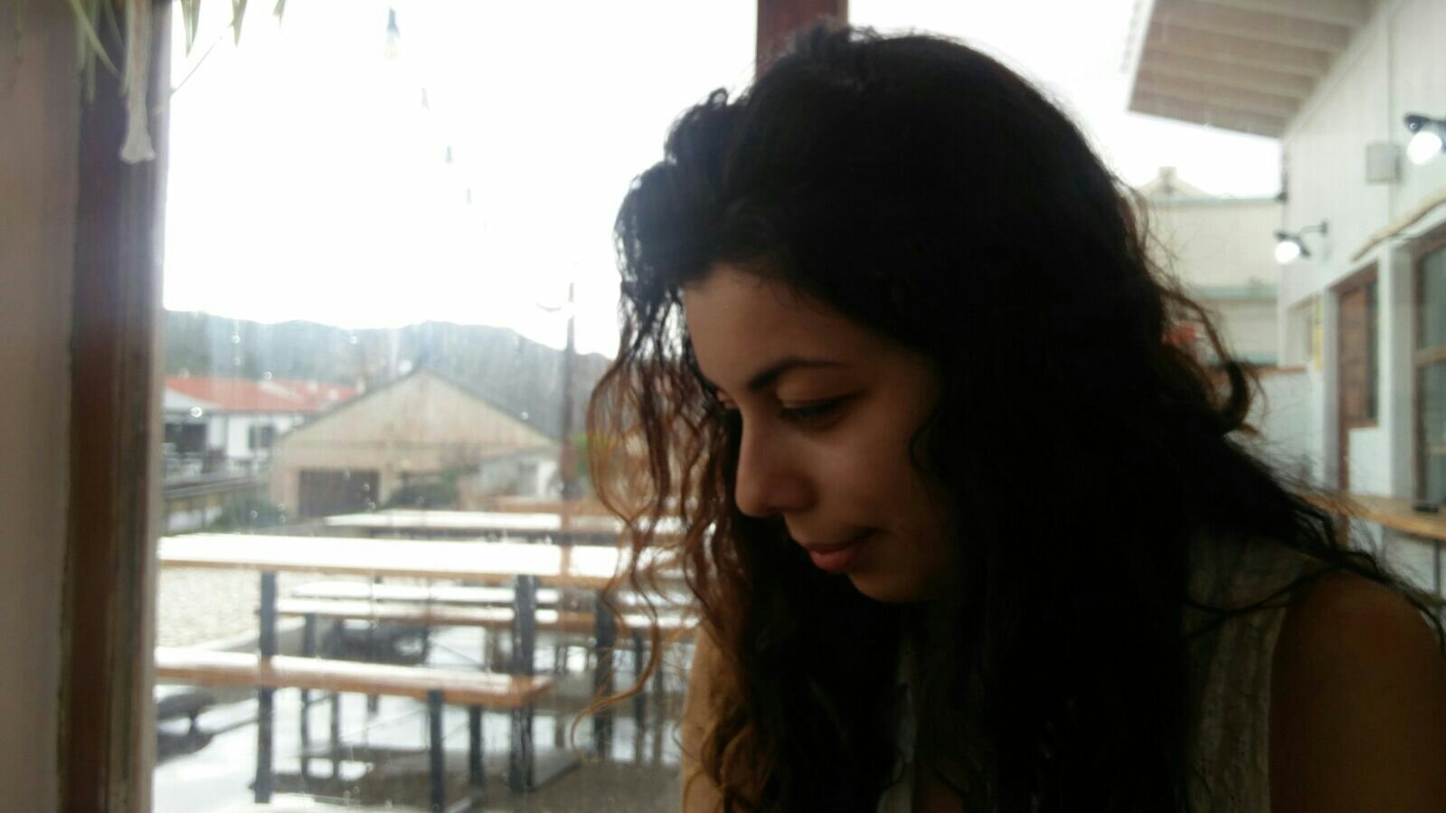 Olhou para a céu e agradeceu baixinho pela chuva. Só depois de deixar que as gotas tocassem a sua pele e escorressem pelos braços e pela face é que procurou abrigo.